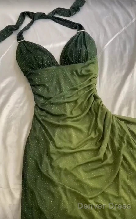 Elegant Halter Straps Ombre Green Long Chiffon Prom Dress