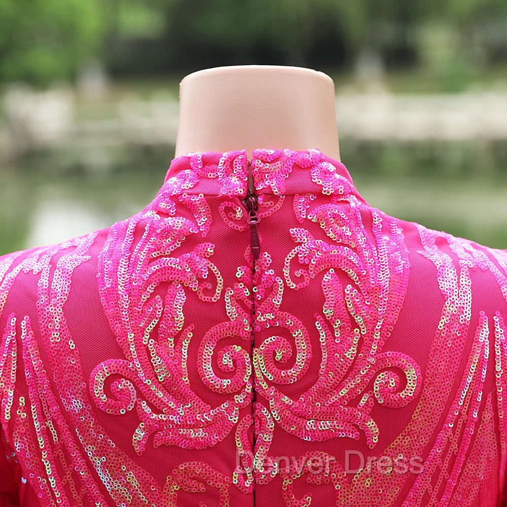 Elegant Hot Pink Mermaid Prom Dresses Sequin Evening Party Dresses Pageant Dresses for Women