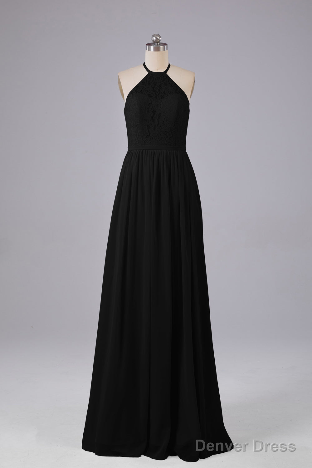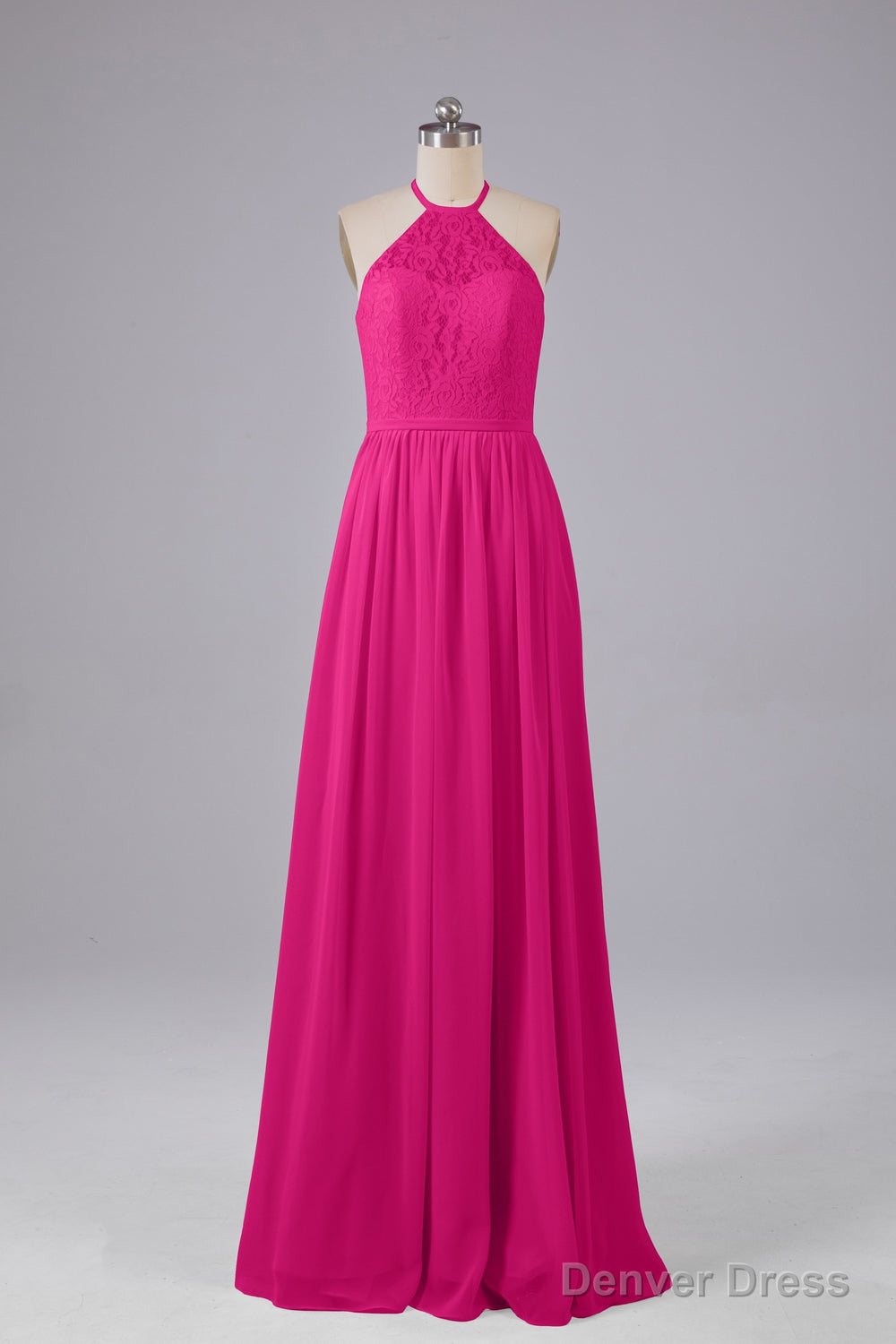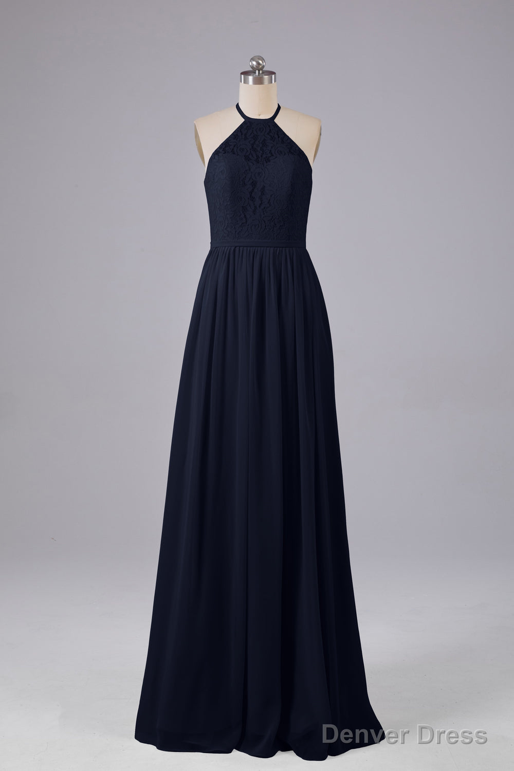 Elegant Keyhole Halter Lace Long Bridesmaid Dresses