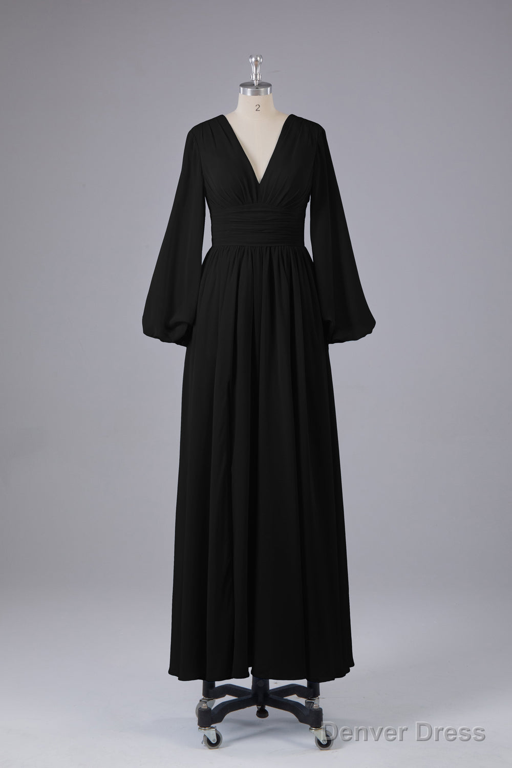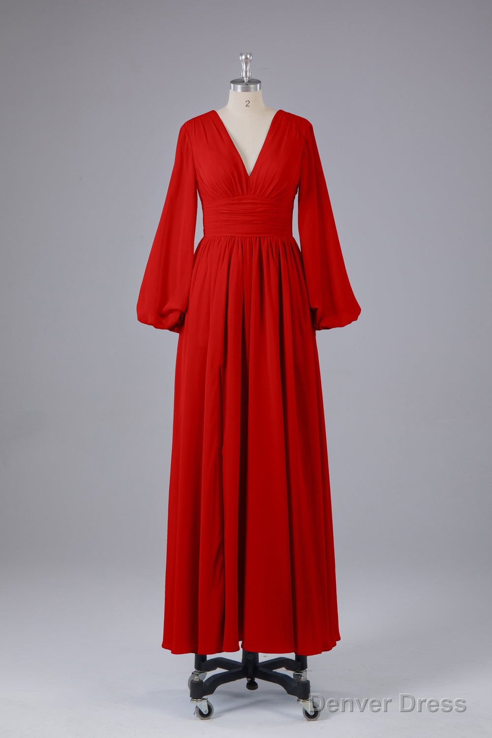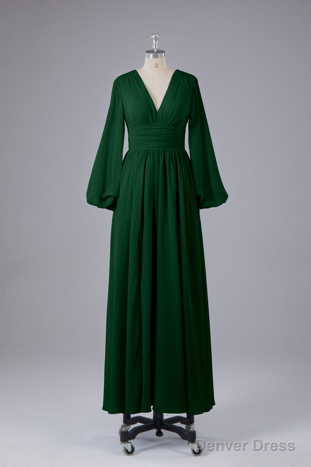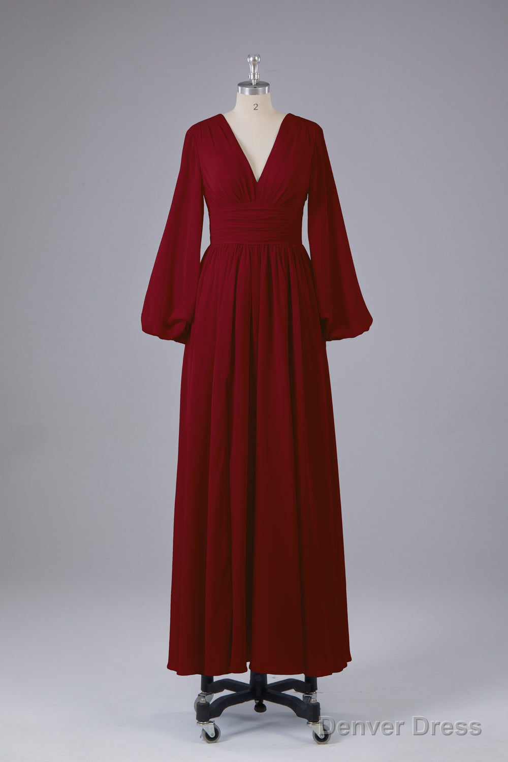 Elegant Long Sleeves V Neck Chiffon Long Bridesmaid Dresses