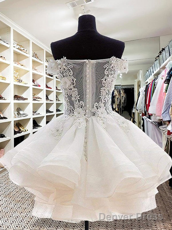 Elegant Off The Shoulder Applique A-Line Organza White Homecoming Dresses Online,