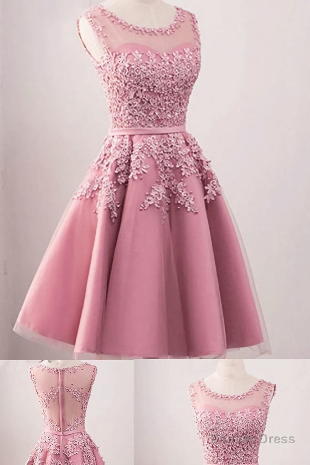 elegant Pink Tulle Short Appliques Girl Homecoming Dresses