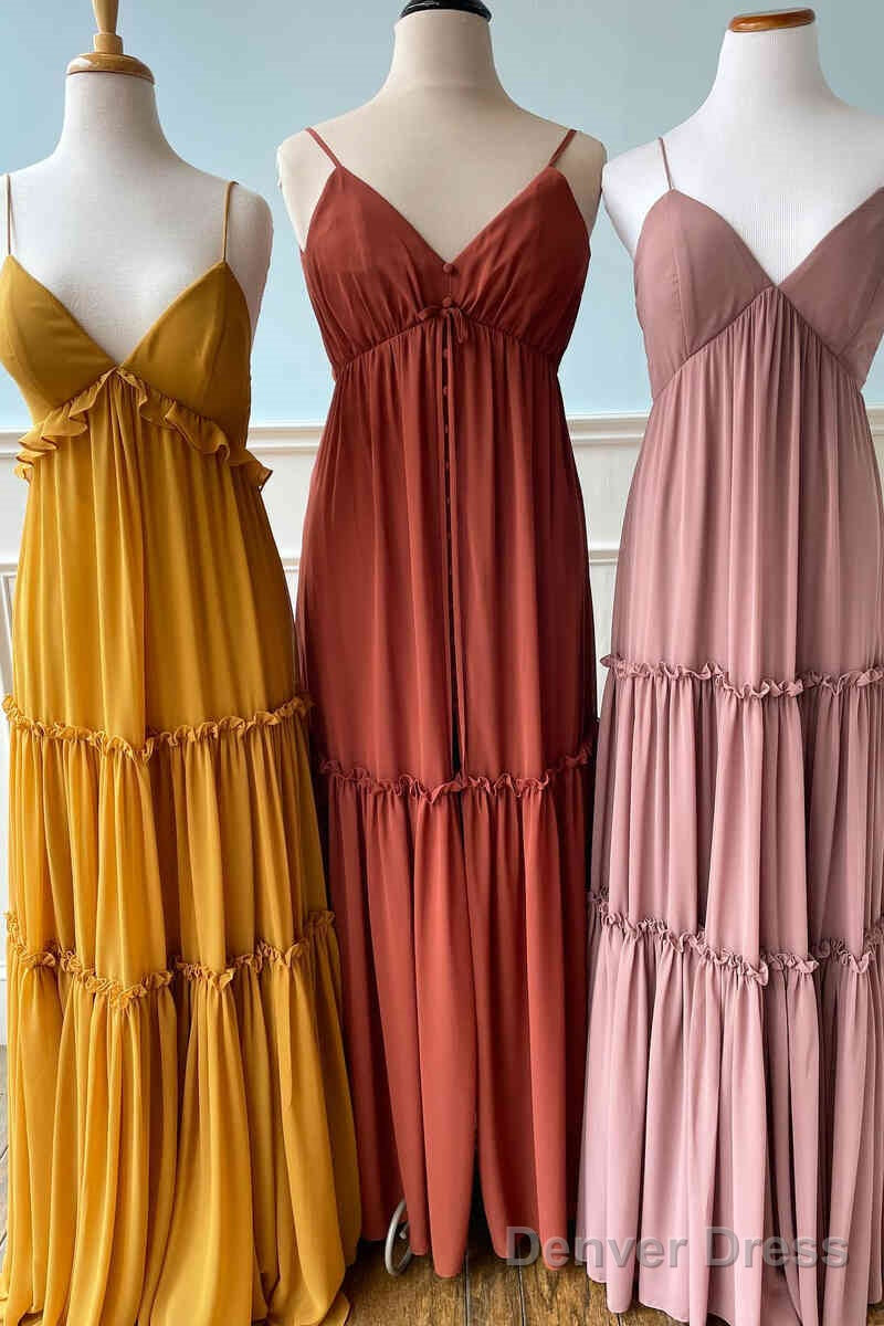 Elegant Straps High Waist Long Bridesmaid Dress With Ruffles