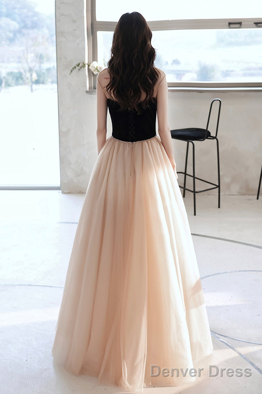 Elegant Tulle Long A-Line Prom Dress, Champagne Scoop Neckline Evening Dress