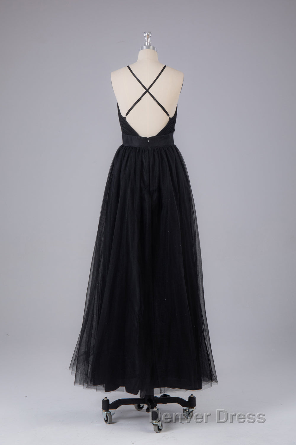 Elegant Tulle Spaghetti Straps Backless Floor Length Prom Dresses