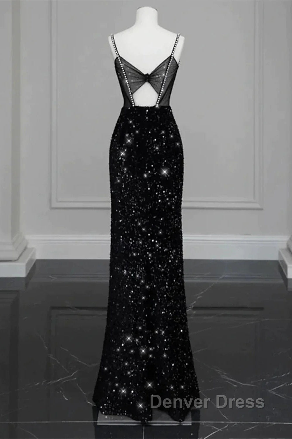 Evening Gown Sexy Dresses Formal Floor Length Sleeveless Strap Sequined With Bow(S) Crystals