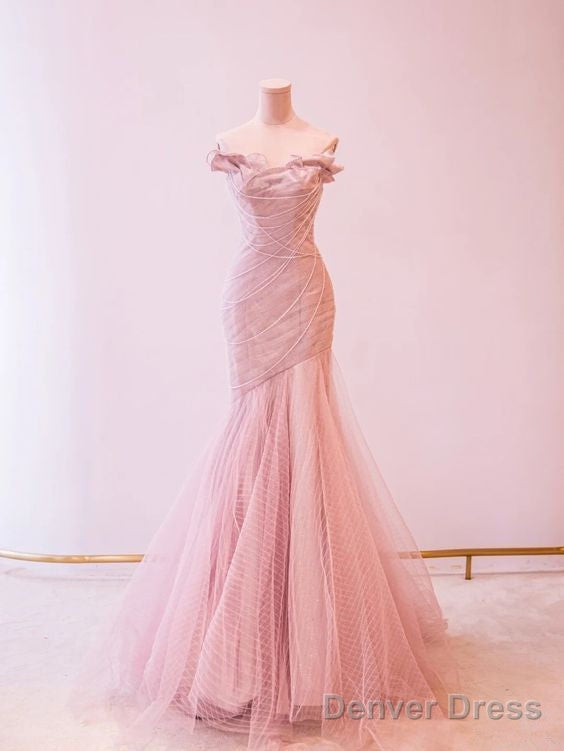 Fairy Mermaid Strapless Pink Prom Dresses Evening Dress