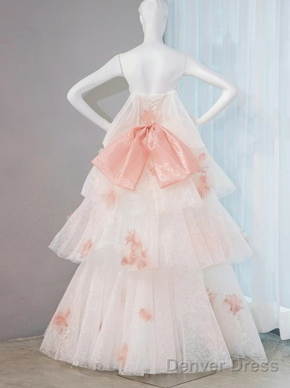 Gentle Pastel Layered A-Line Strapless Tulle Long Prom Dress Cute Applique Birthday Evening Dress