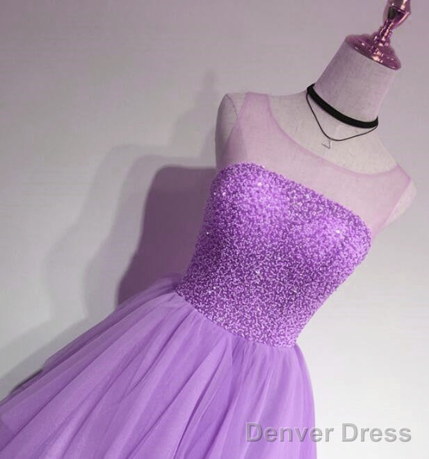 Glam Light Purple Tulle High Low Beaded Layers Party Dress, Formal Dress
