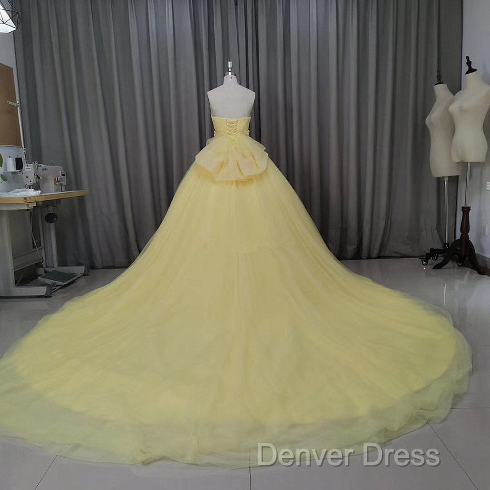 Glam Yellow Sweetheart Flowers Sweet 16 Gown, Yellow Formal Gown