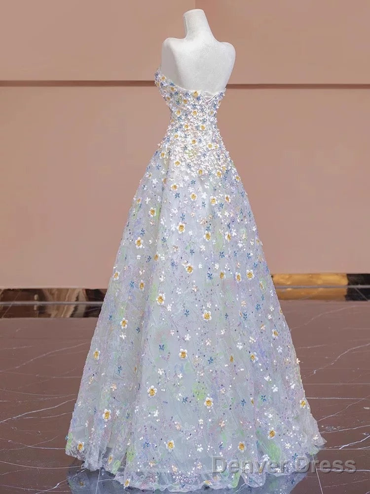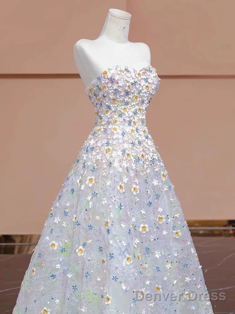 Gorgeous Balll Gown Sweetheart Floral Tulle Long Evening Dress Prom Dresses