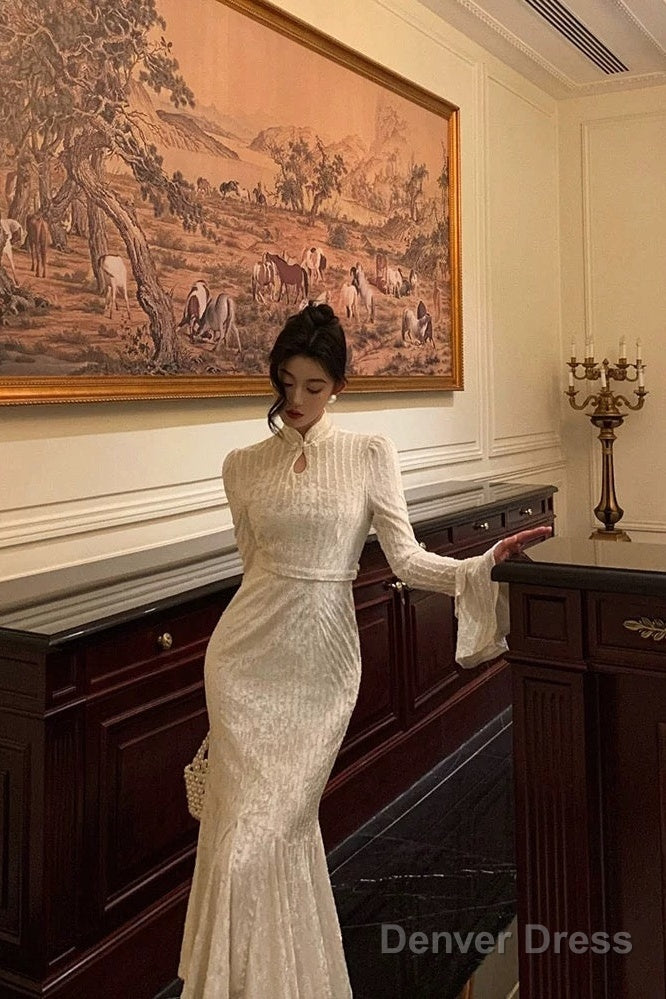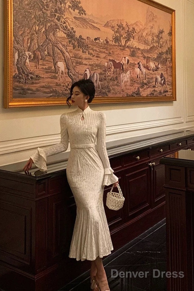 Gorgeous Mermaid High Neckline Ivory Satin Date Night Dress Prom Dresses Birthday Outfits