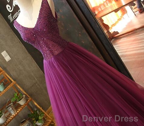 Gorgeous Purple Beaded V-Neckline Party Gown, Sweet 16 Dresses