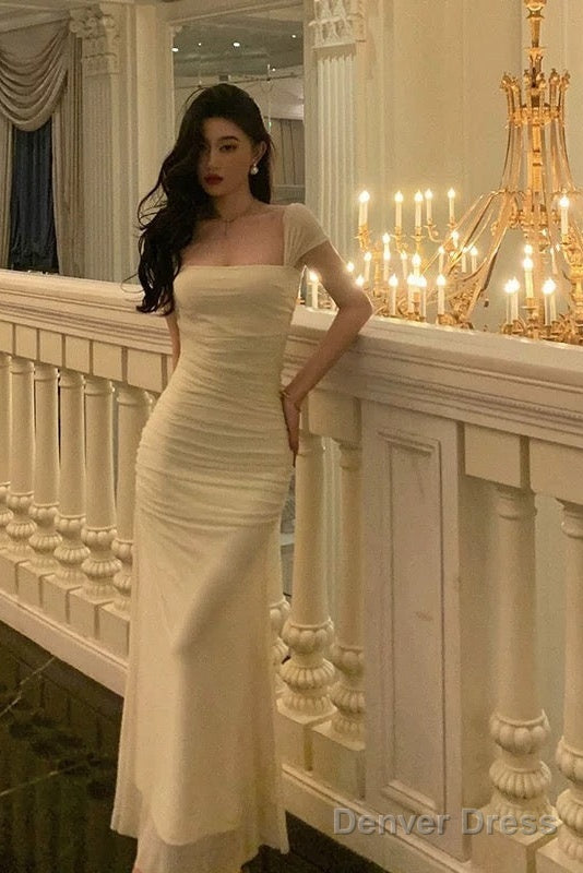 Gorgeous Sheath Square Neckline Ivory Date Night Dress Prom Dresses Party Dress Birthday Outfits