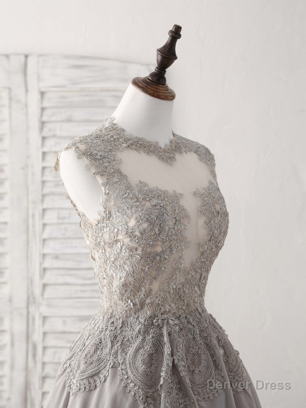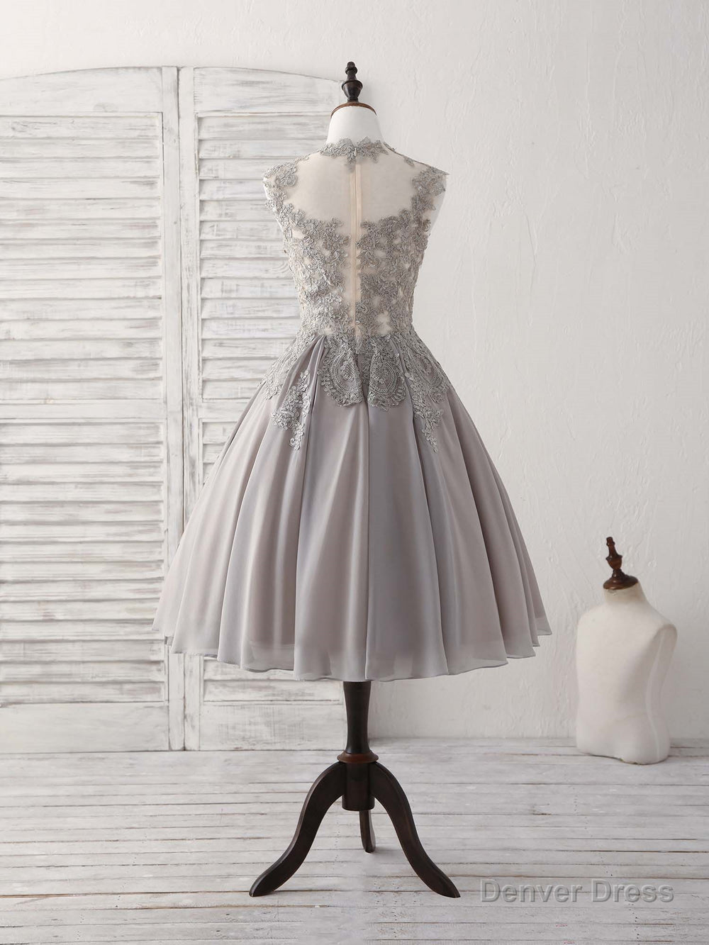 Gray High Neck Lace Chiffon Short Prom Dress Gray Bridesmaid Dress