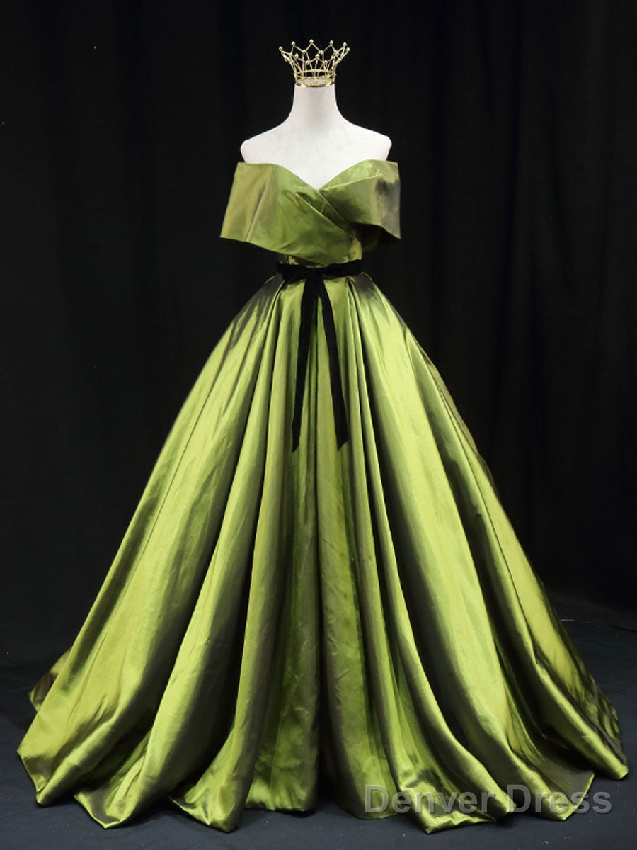 Green A Line Satin Long Prom Dress Green Long Bridesmaid Dress