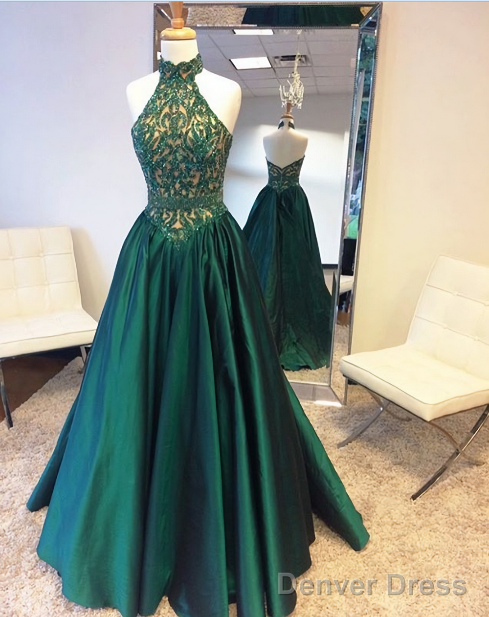 Green Halter Beading Lace A Line For Teens Elegant Backless Fashion 2025Women Prom Dresses