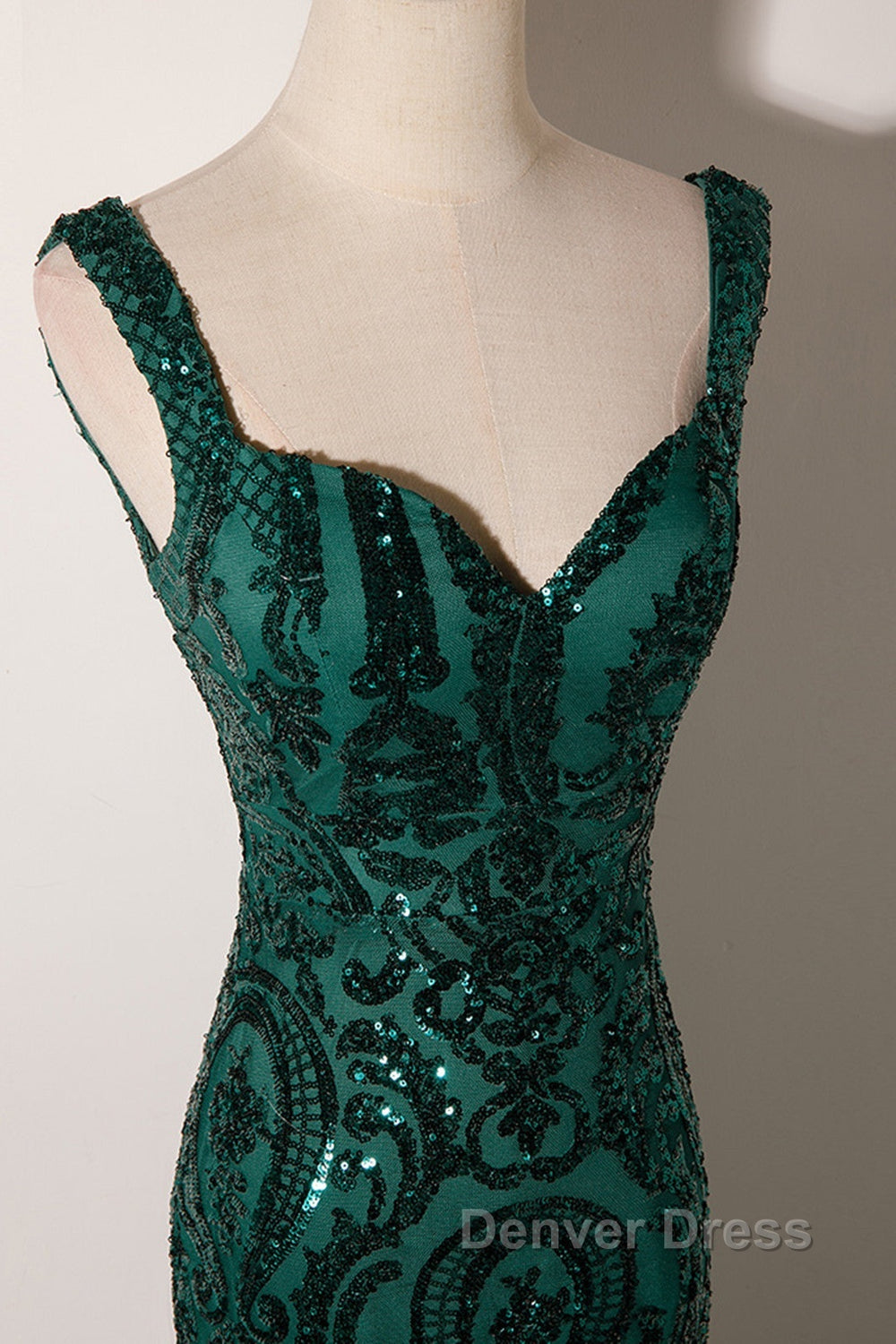 Green Mermaid Long Straps Sequins Long Prom Dresses, Green Mermaid Evening Dresses