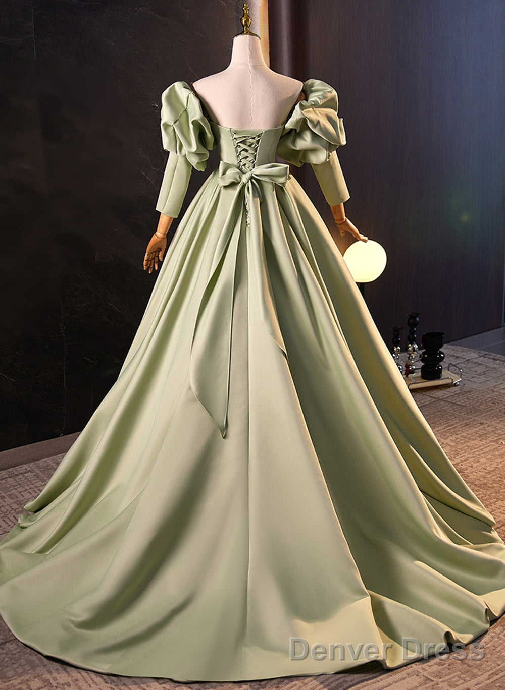 Green Satin Off Shoulder Long Formal Dress, Green Long Evening Dress Sweet 16 Dress