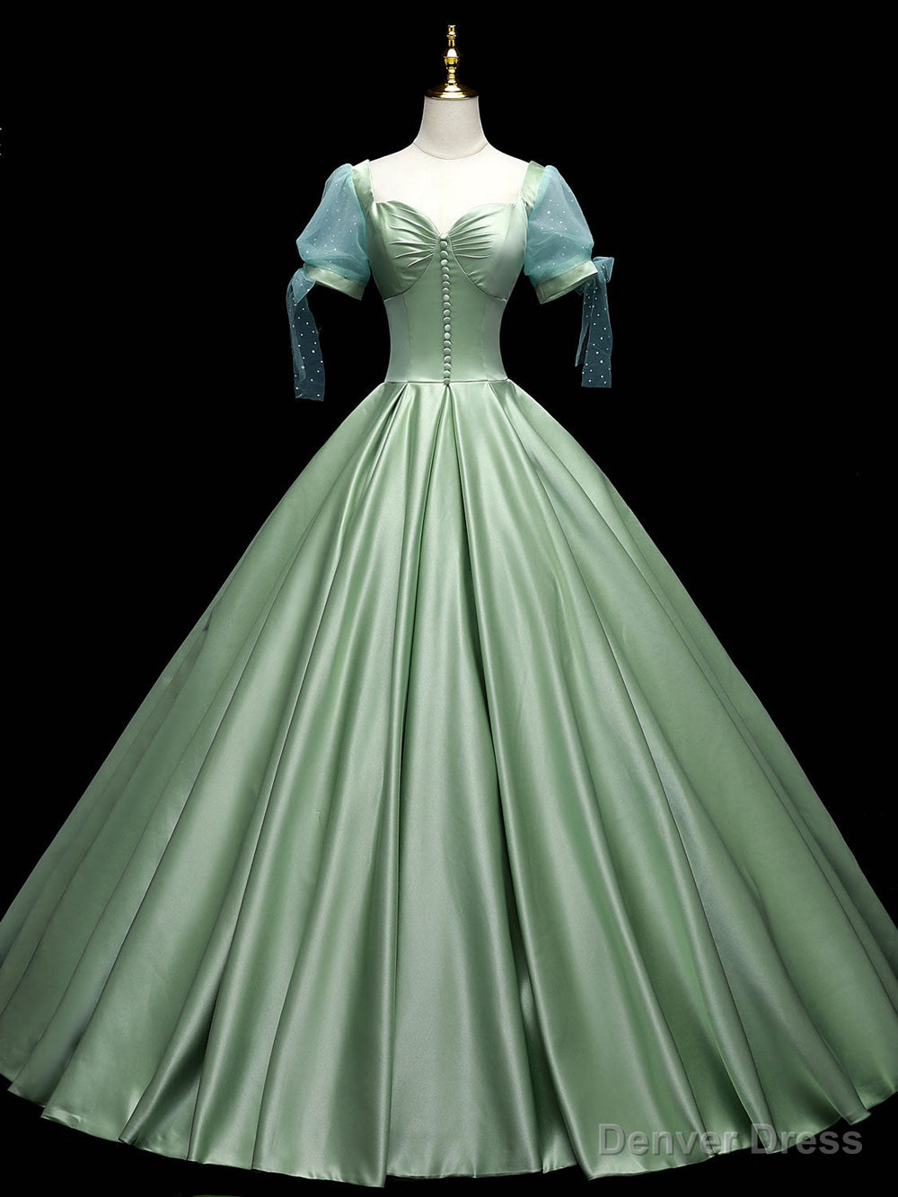 Green Sweetheart Neck Satin Long Prom Dresses, Green Sweet 16 Dresses