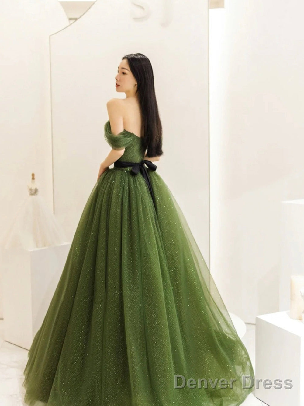 Green Tulle Floor Length Prom Dress, Lovely Off The Shoulder Evening Party Dress