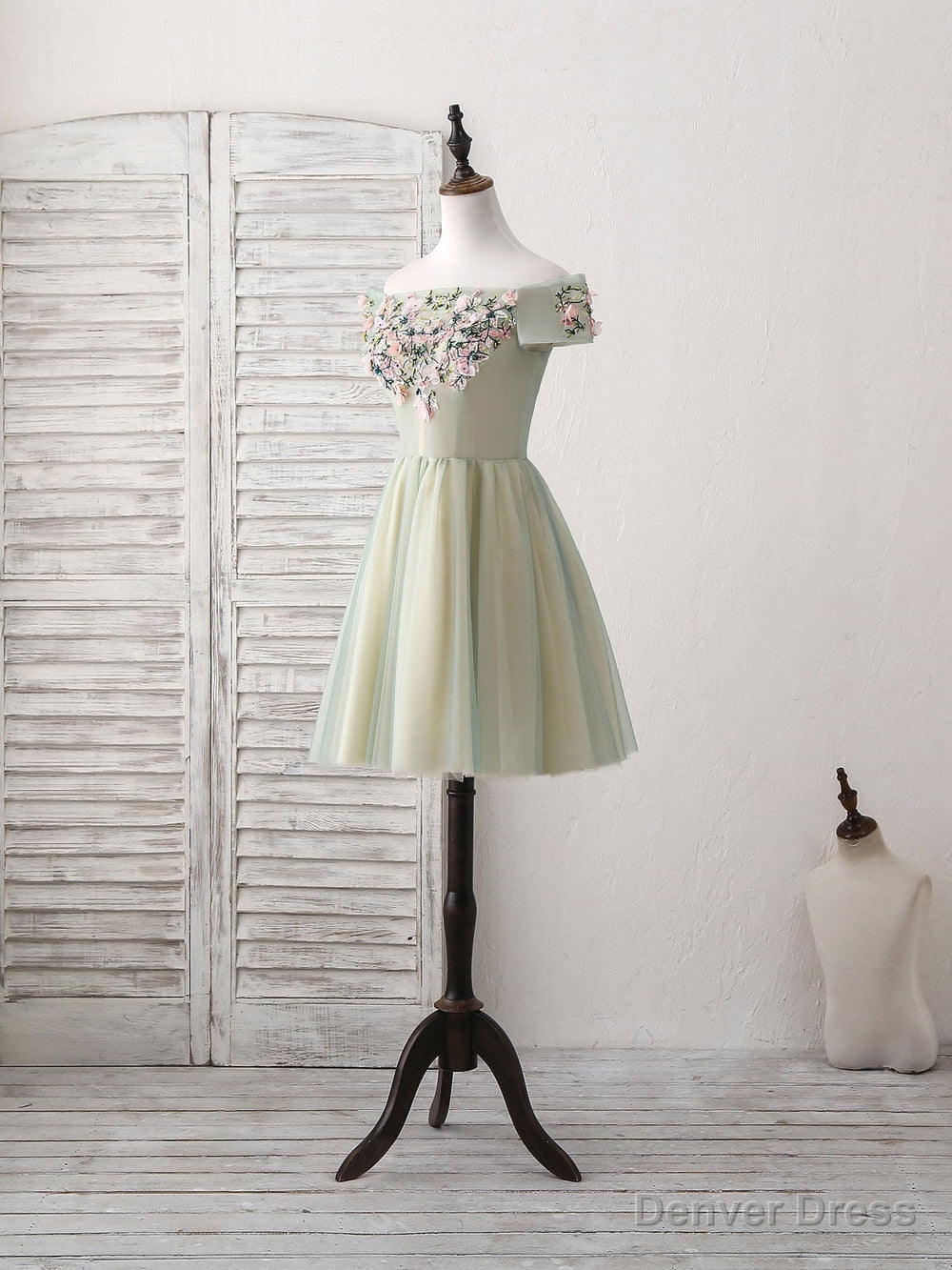 Green Tulle Lace Applique Short Prom Dress, Green Homecoming Dress