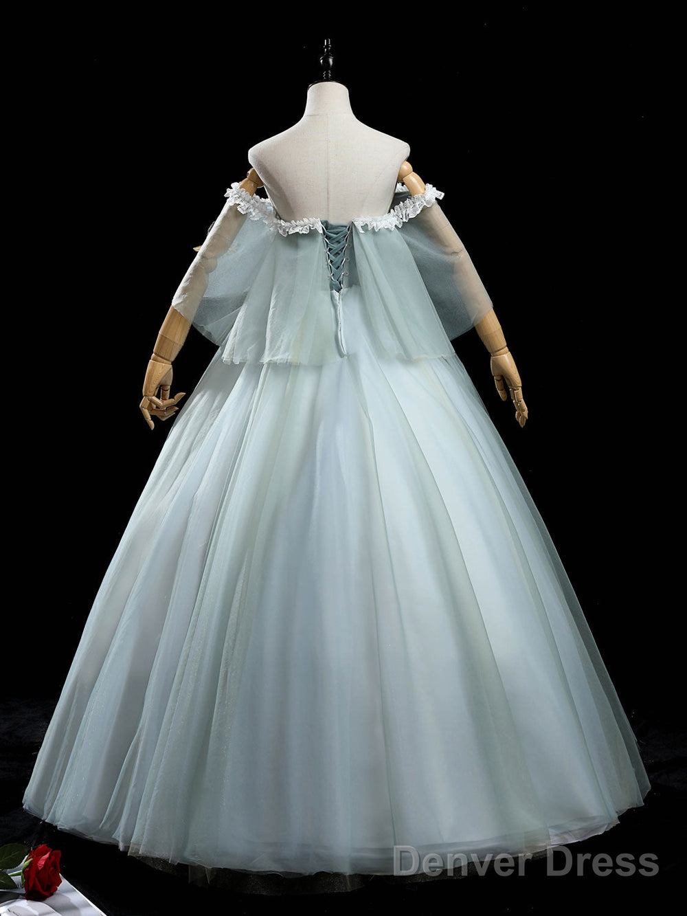 Green Tulle Lace Long Prom Dress, Lace Evening Dress