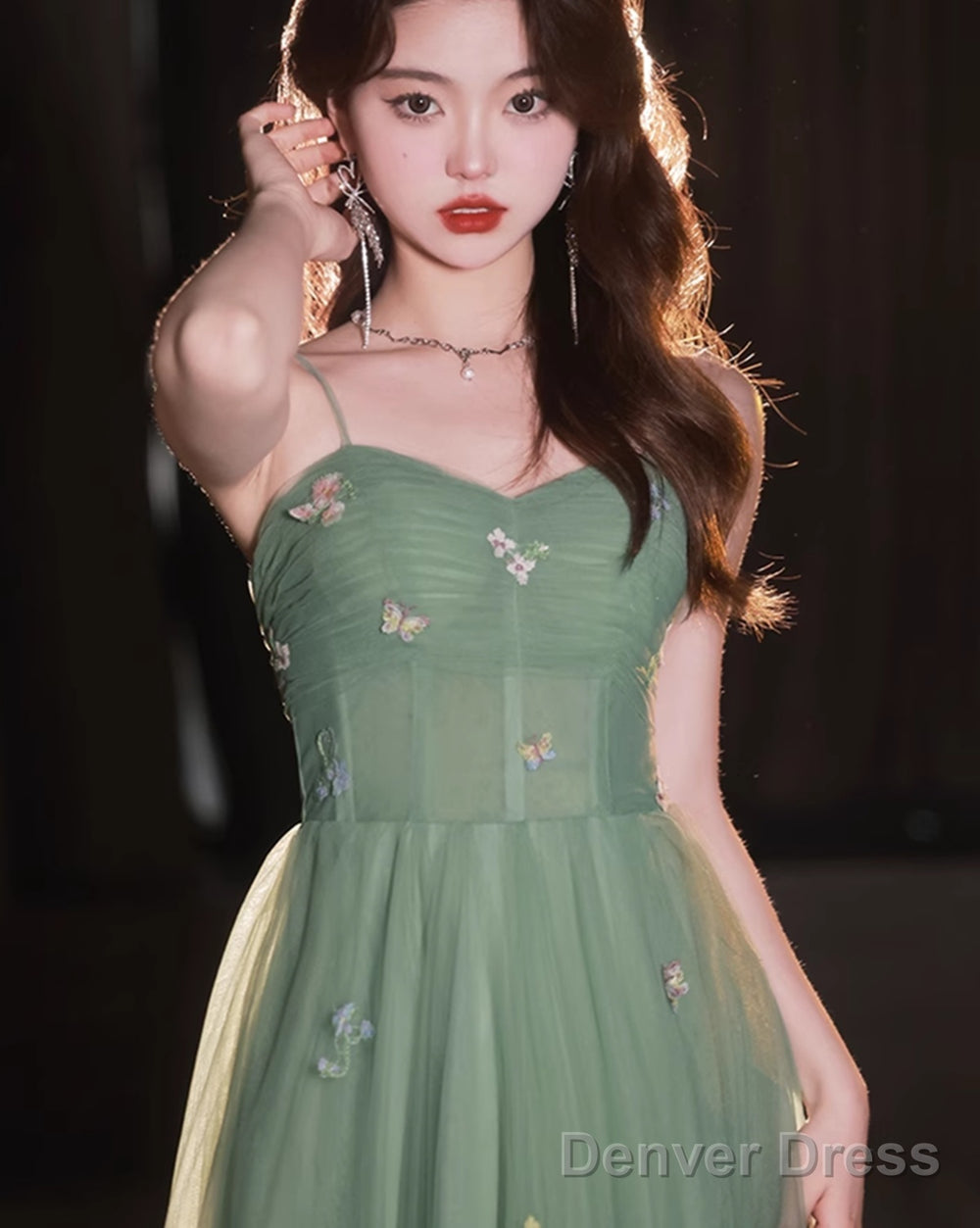 Green Tulle Straps Sweetheart Long Formal Dress, Light Green A-Line Prom Dress