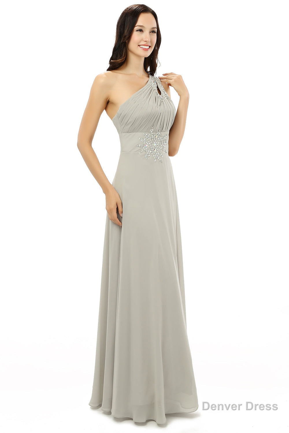 Grey One Shoulder Chiffon Pleats Beading Bridesmaid Dresses