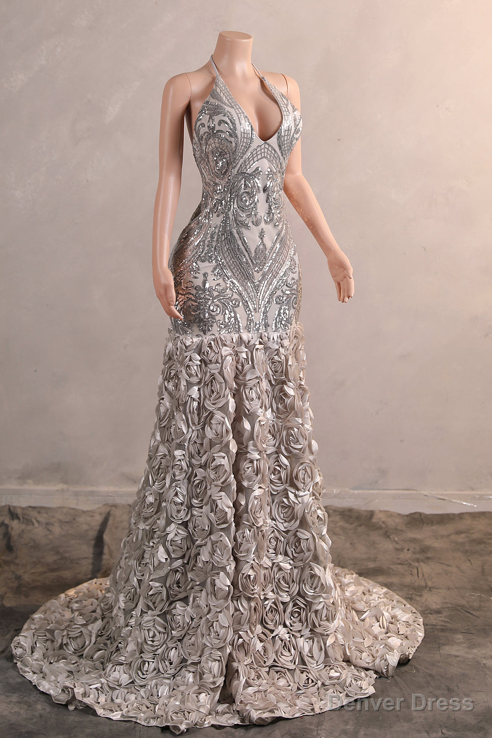 Halter Sequins Mermaid Dress Off Shoulder Deep V Neck Prom Gowns Sexy Backless Long Train Evening Party Prom Gowns