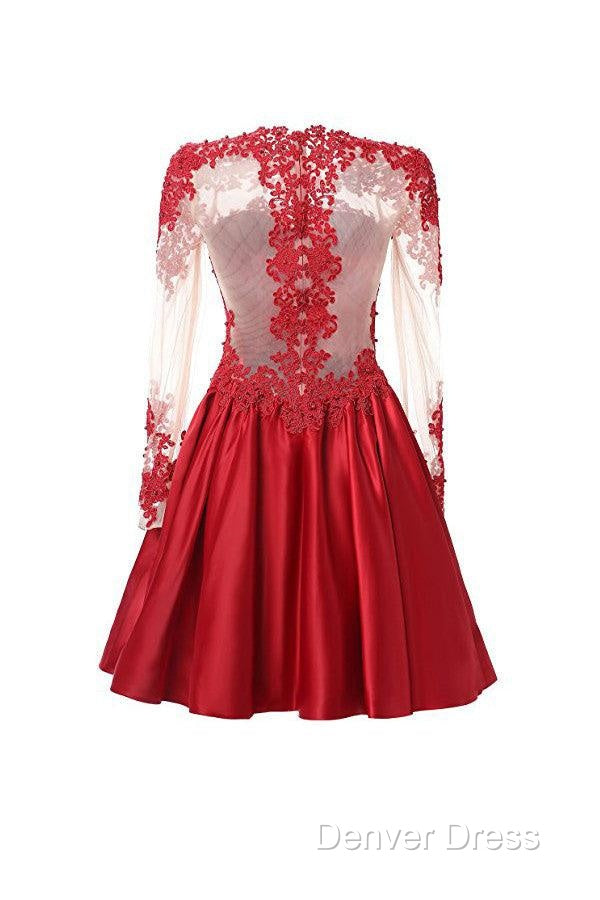 High Neck Long Sleeves With Applique Red Homecoming Dresses