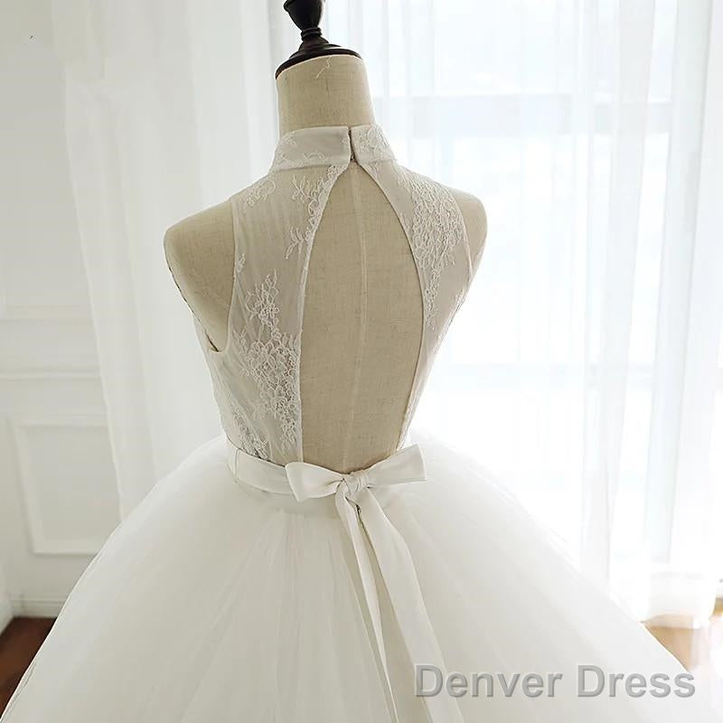 High Neck Open Back Tulle Ball Gown Wedding Dresses