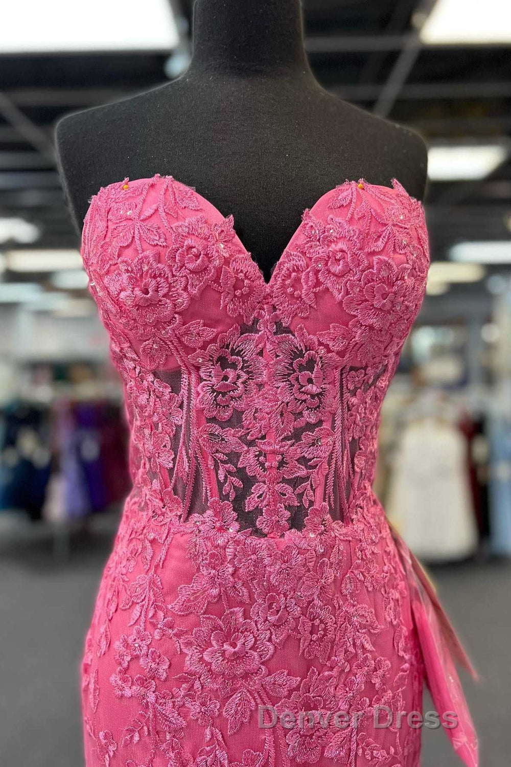 Hot Pink Appliques Strapless Mermaid Long Prom Dresses