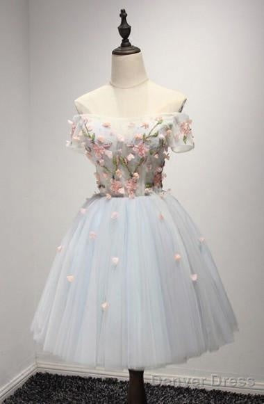 Knee-Length Light Blue Tulle Homecoming Dress With Appliques