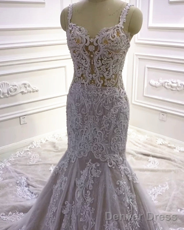 Lace Embroider Wedding Dress Mermaid Sweetheart Spaghetti Straps