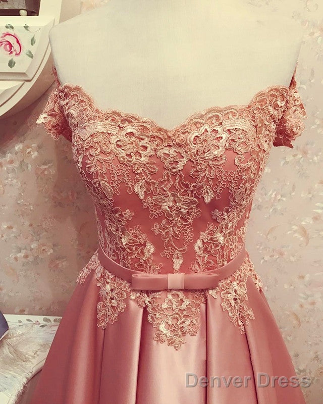Lace Off Shoulder Satin Homecoming Dresses Bow Sashes