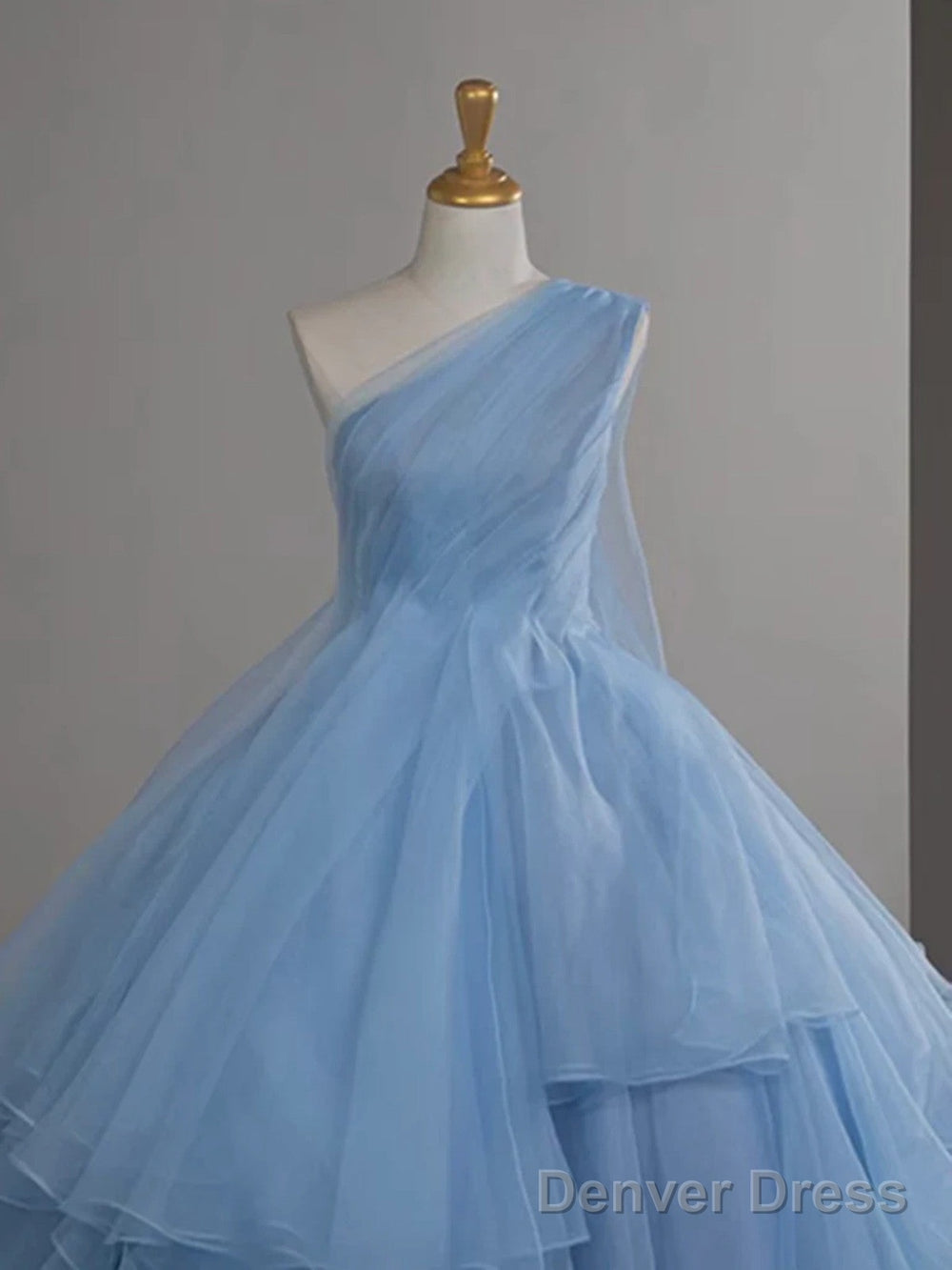 Light Blue Tulle One Shoulder Ball Gown Formal Dress, Light Blue Party Dress