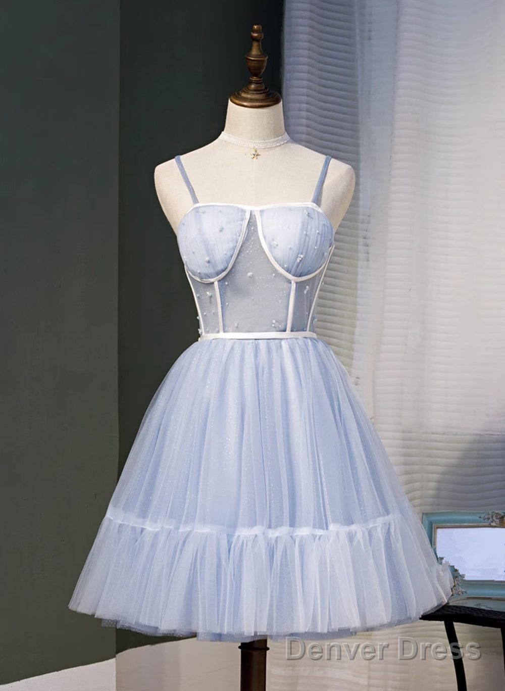 Light Blue Tulle Sweetheart Straps Party Dress, Light Blue Homecoming Dress