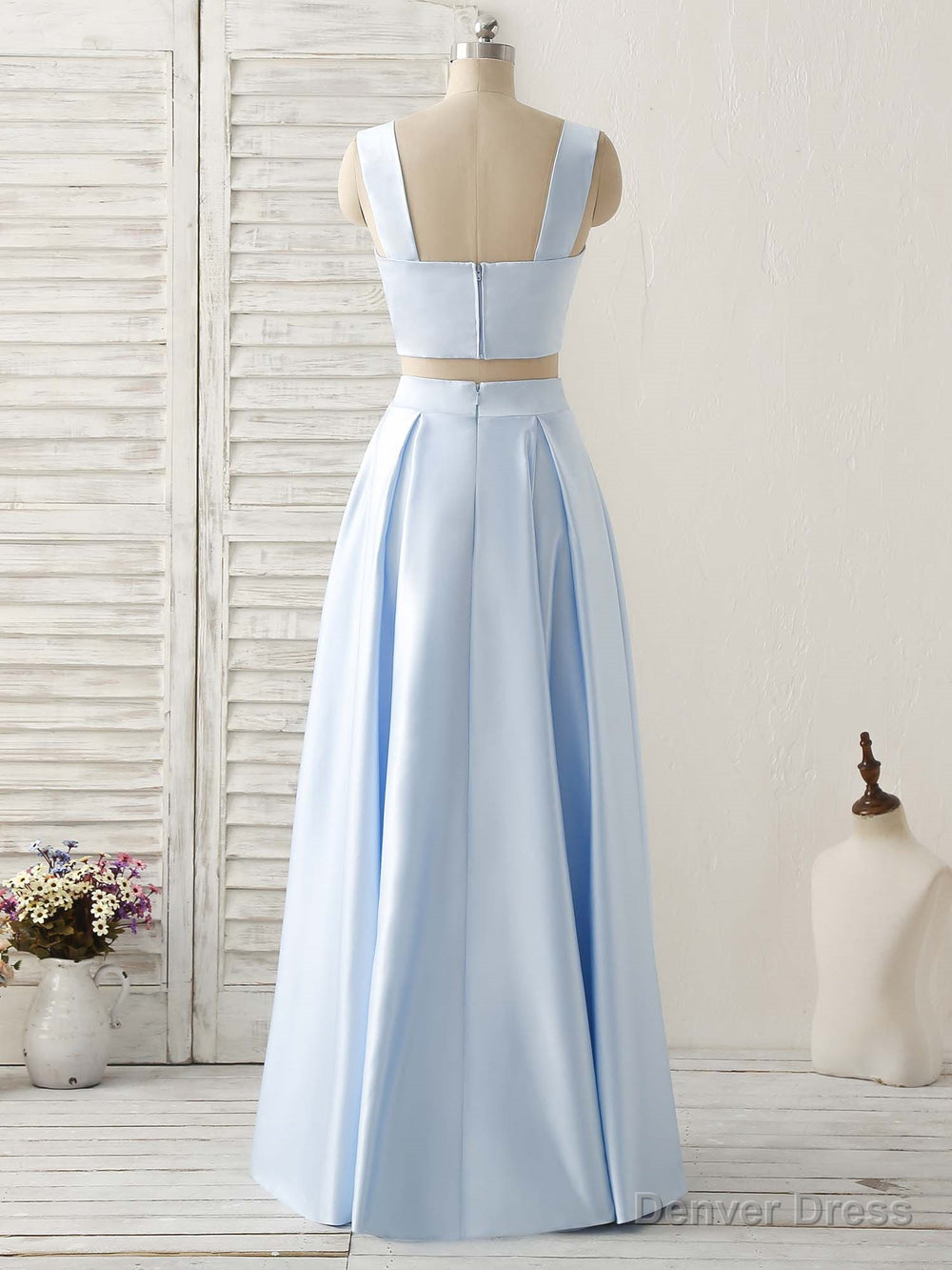 Light Blue Two Pieces Satin Long Prom Dress Simple Evening Dress