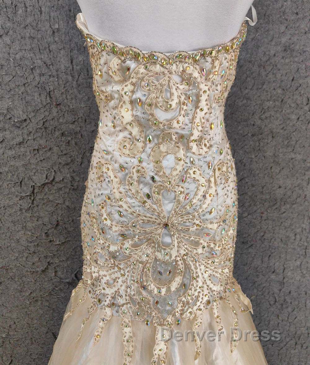 Light Champagne Mermaid Sweetheart Neck Beaded Tulle Long Ball Dresses Vintage Evening Dresses
