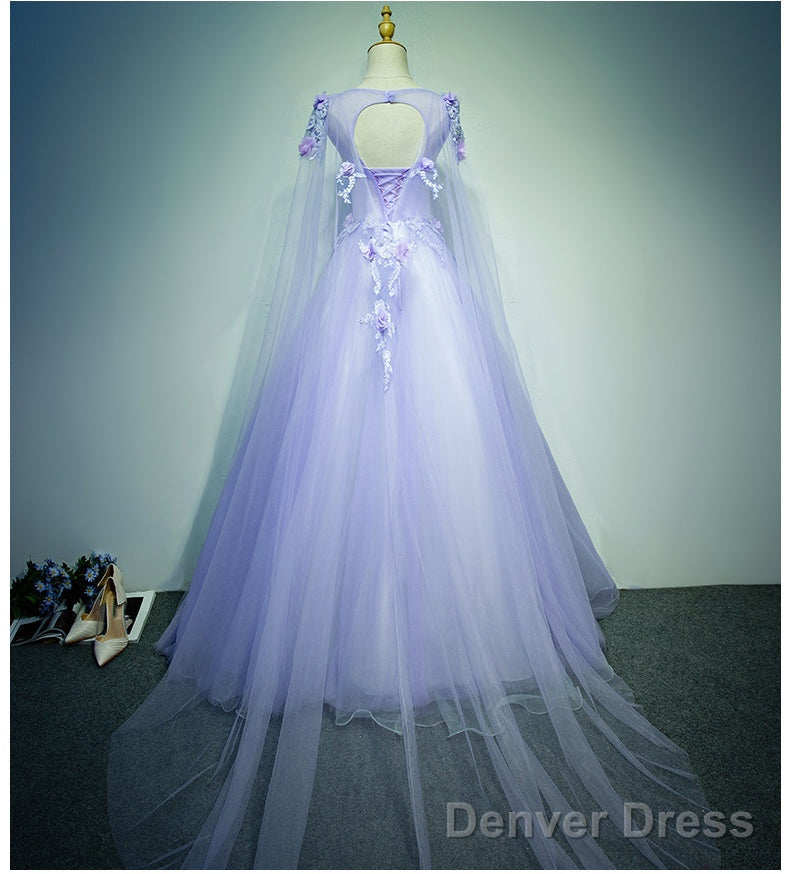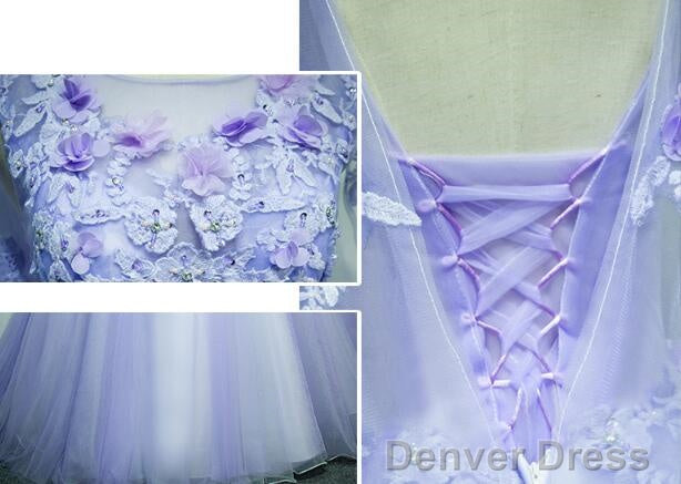 Light Purple Charming Tulle Sweet 16 Gown With Lace, Flowers Formal Dress