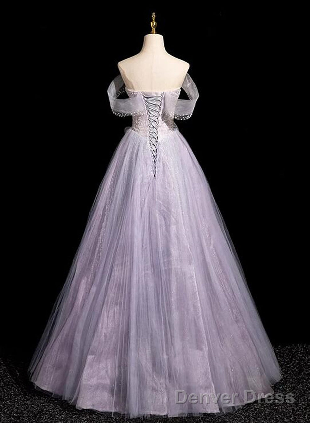 Light Purple Off Shoulder Tulle Long Party Dress, A-Line Light Purple Prom Dress