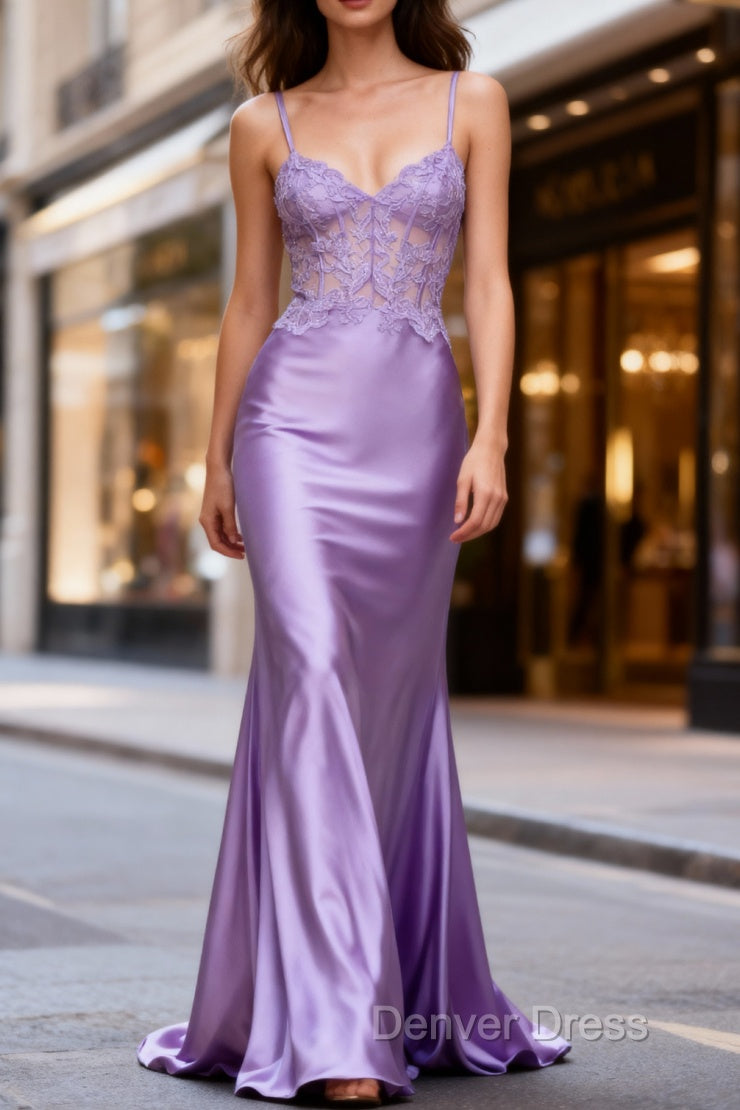 Lilac Floral Elegant Mermaid Corset Long Prom Dress