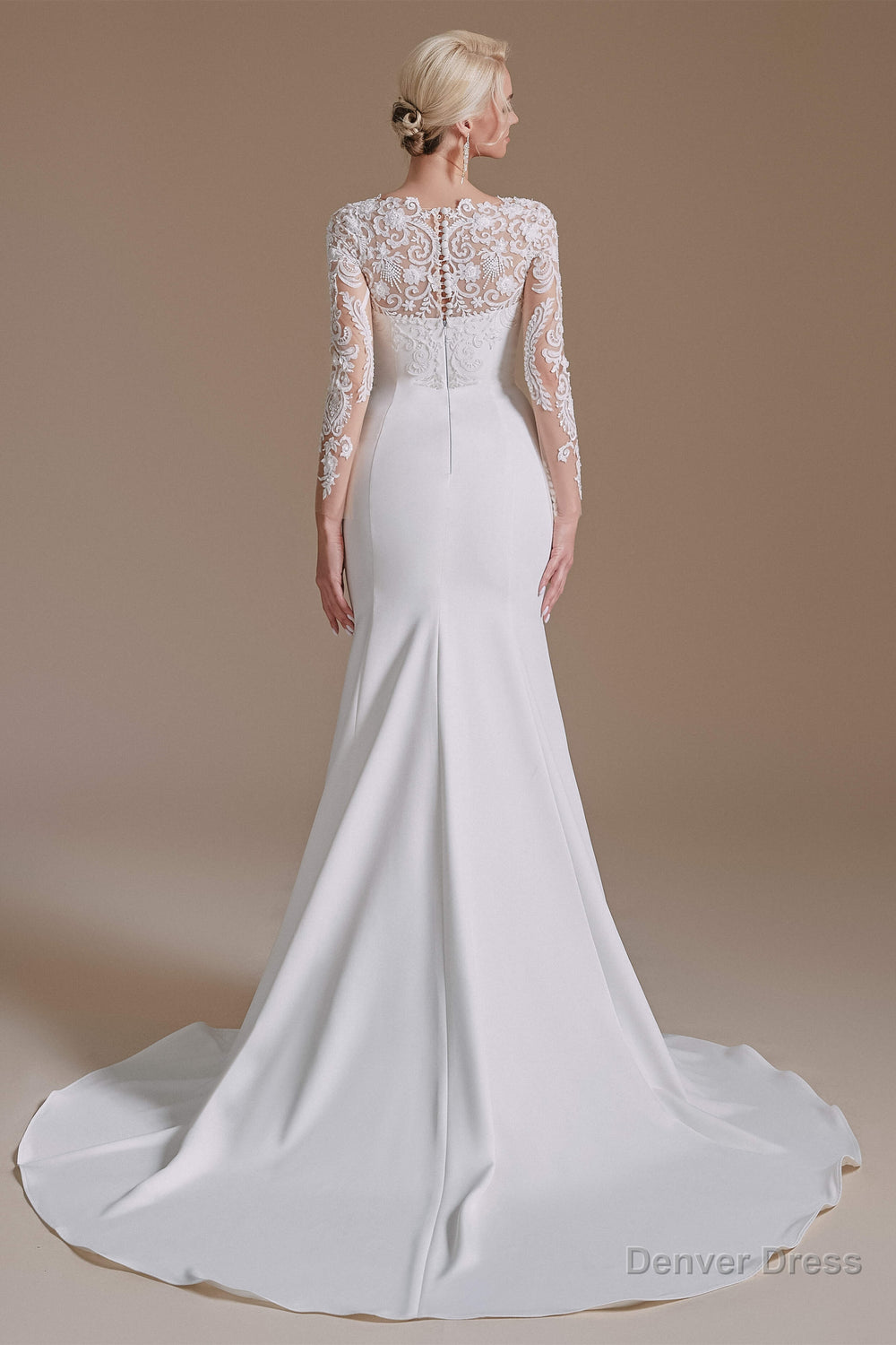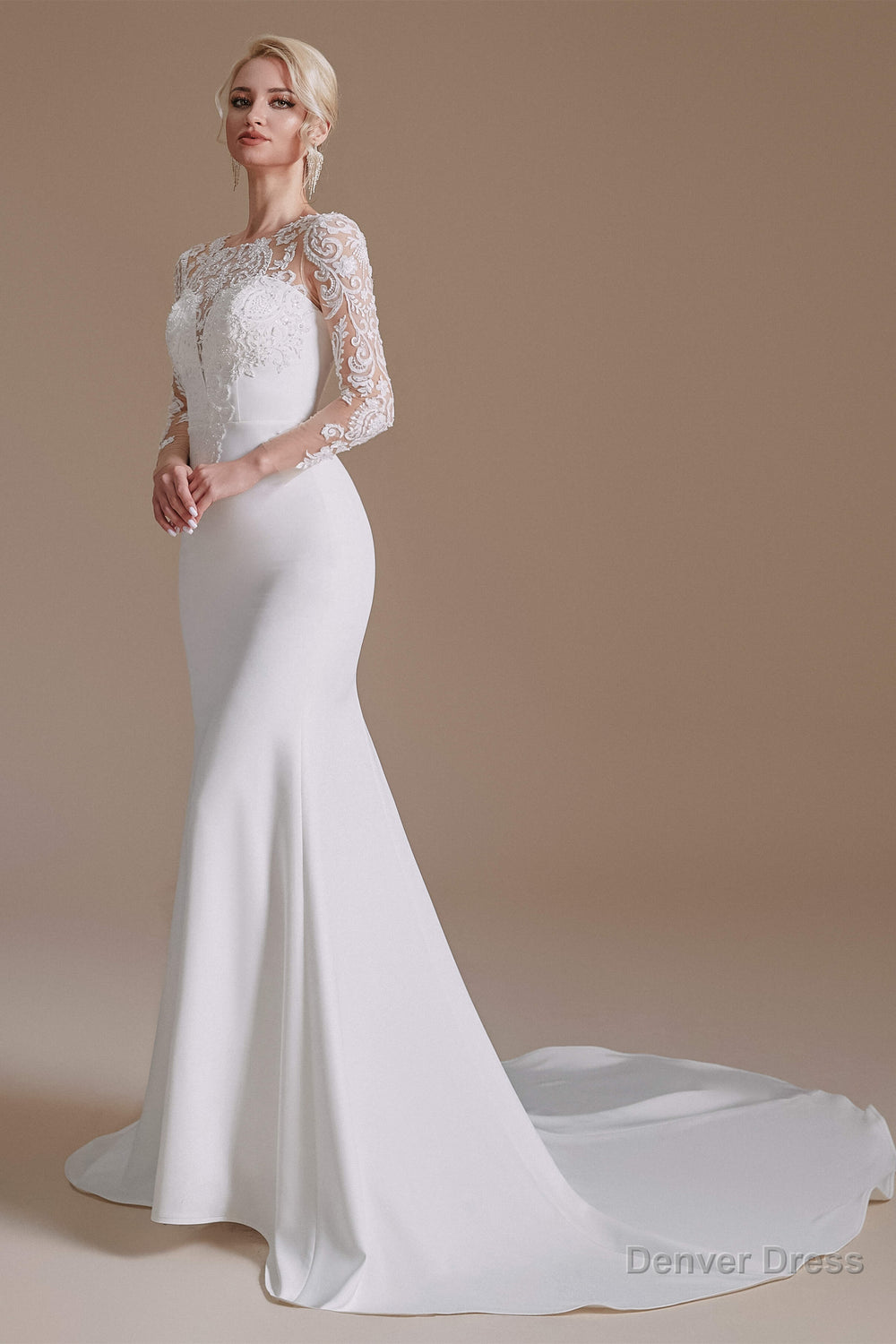 Long Sleeve Beaded French 3D Floral Lace Fishtail Elegant Bridal dresses