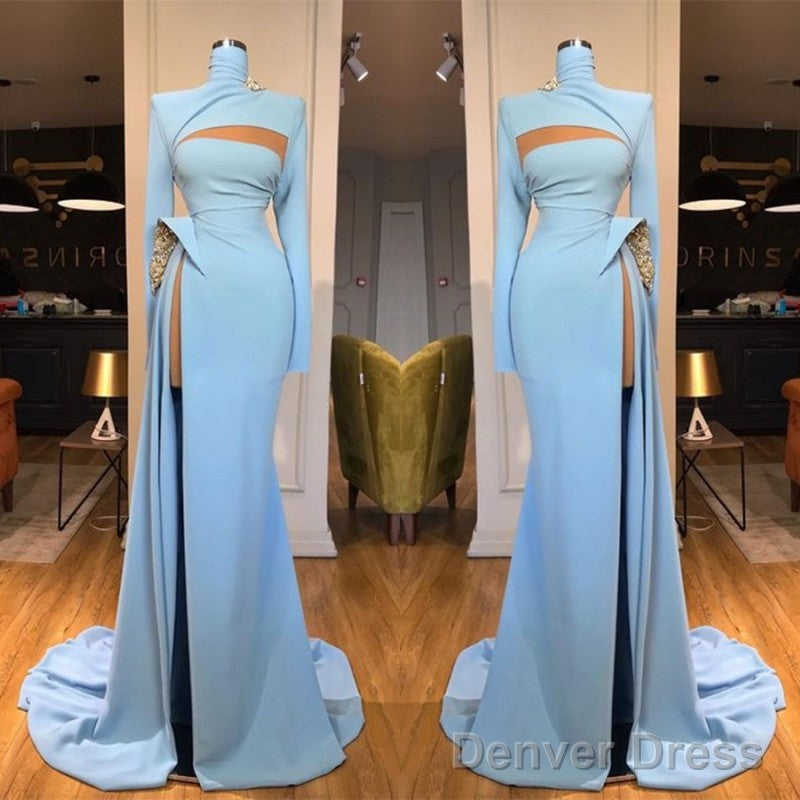 Long Sleeves High Neck Mermaid Prom Dress Long With Slit