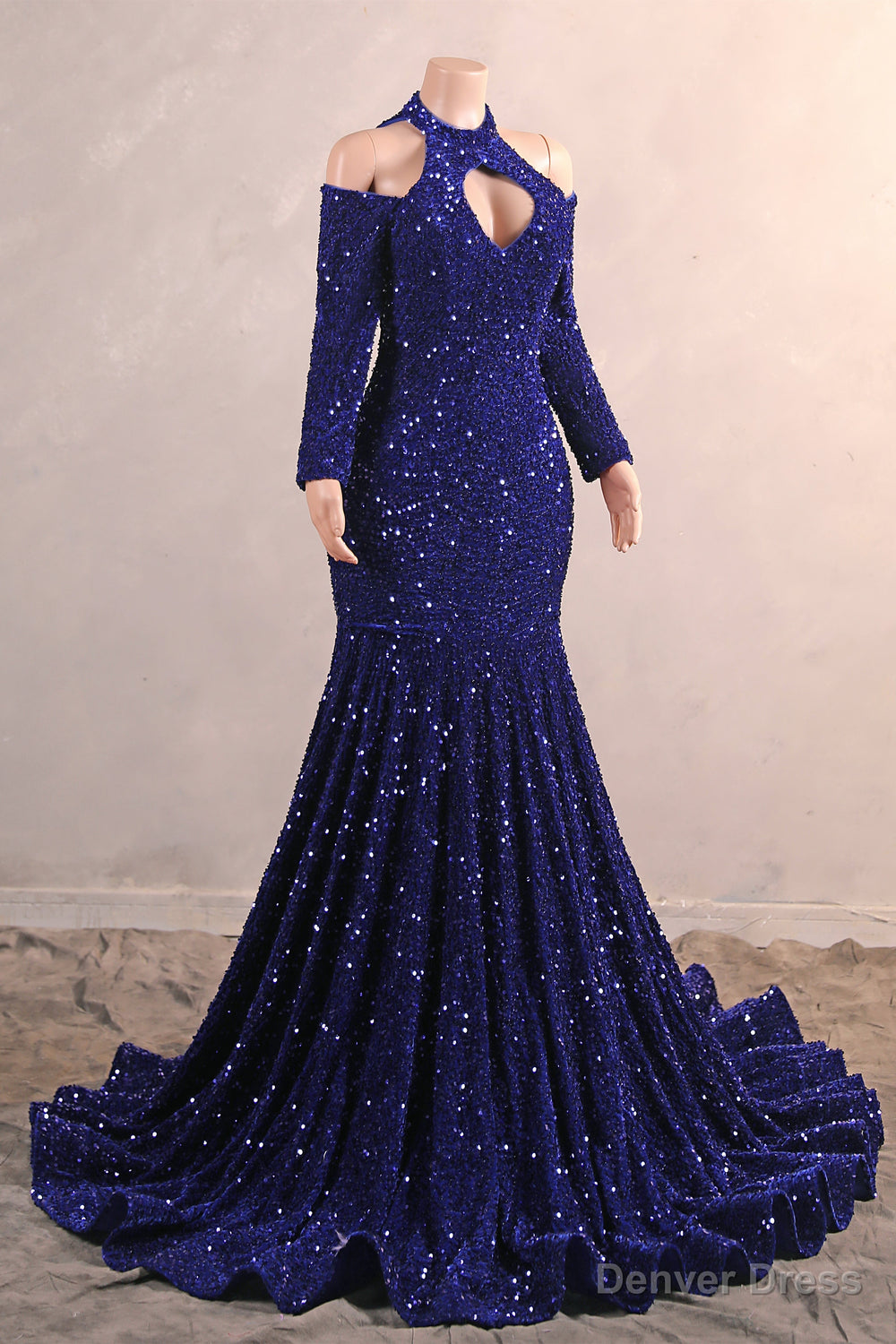 Long Sleeves Royal Blue Prom Dresses Sequin Mermaid Long Dress
