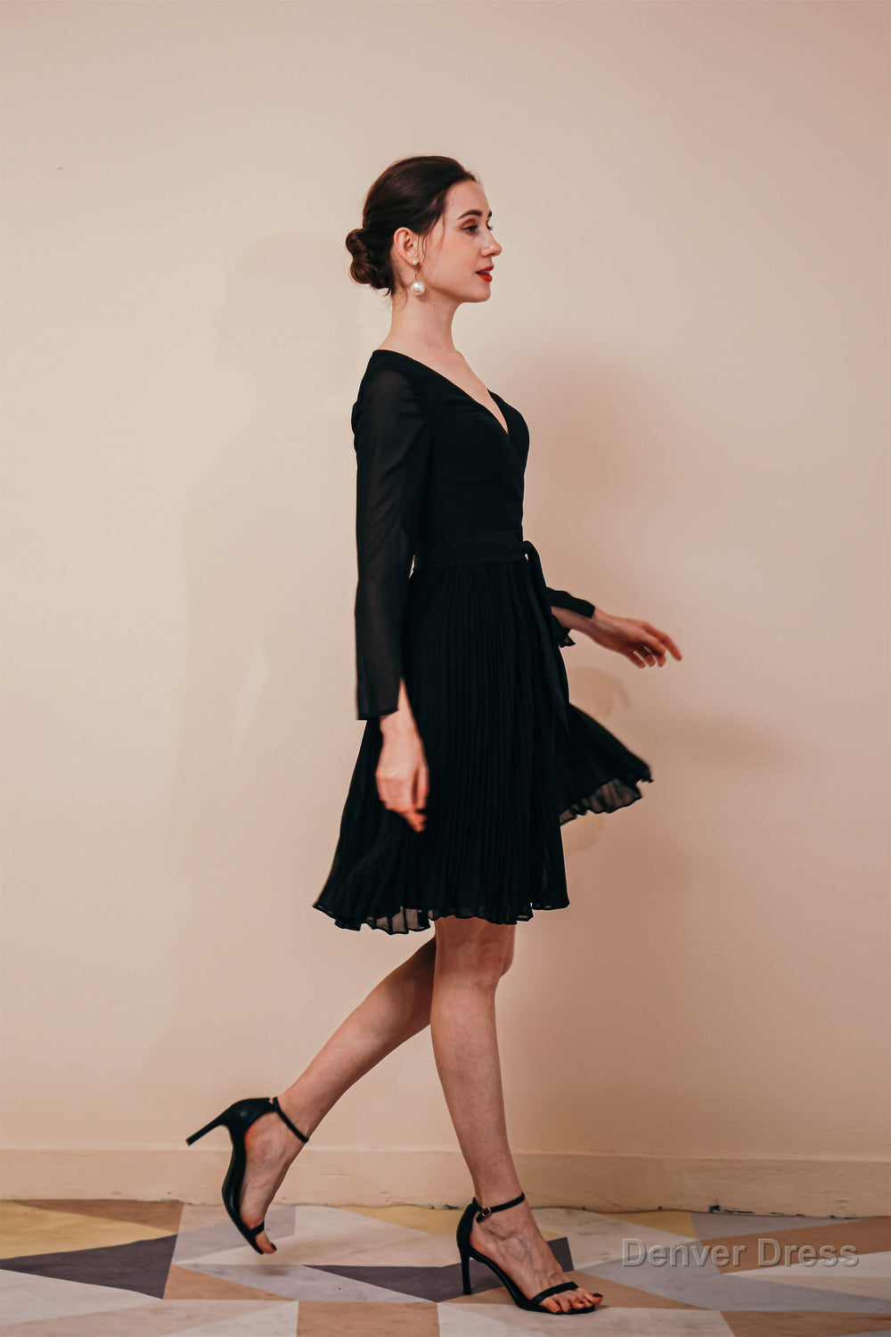 Long Sleeves Ruffles with Belt Knee Length Chiffon Prom Dresses