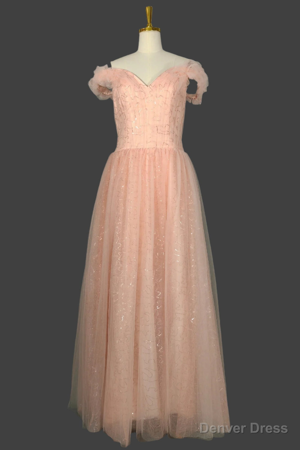 Long Straps A-line Prom Dresses Tulle Off Shoulder Evening Dresses
