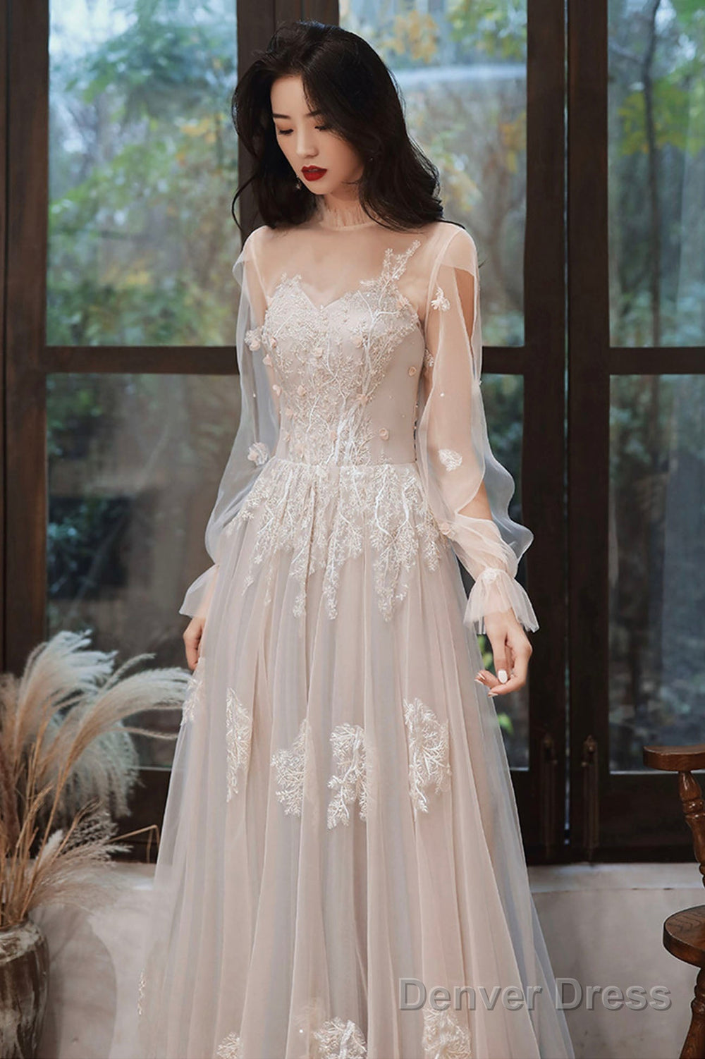Lovely Lace Long A-Line Formal Dress, Long Sleeve Evening Dress