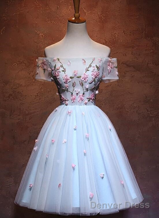 Lovely Light Blue Tulle Knee Length Homecoming Dress, Cute Floral Party Dress